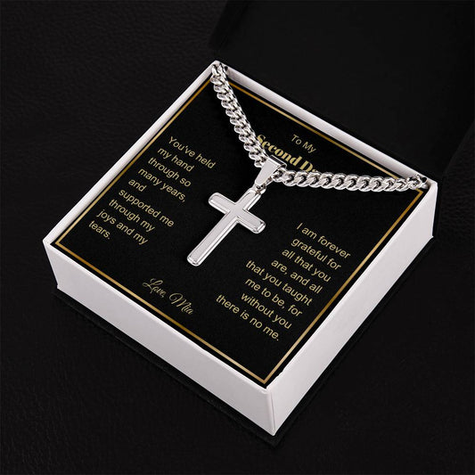 Second Dad Father Figure Engraved Cross Necklace on Chain