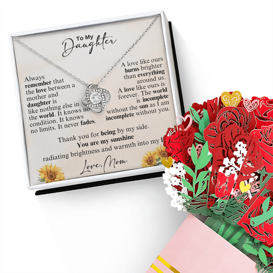 To My Daughter Knot Necklace and Paper Flower Bouquet
