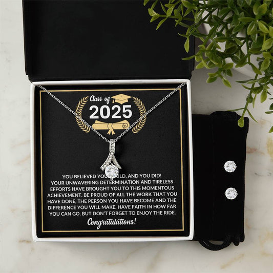 Graduation Necklace Class of 2025 Alluring Beauty and Earring Gift Set