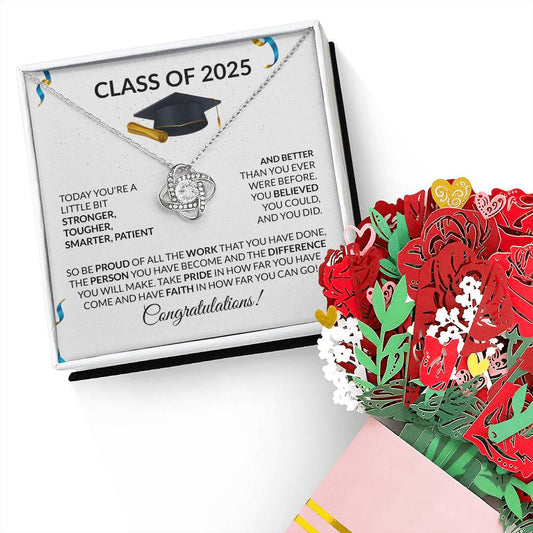 Class of 2025 Graduation Knot Necklace & Flower Bouquet Gift Set