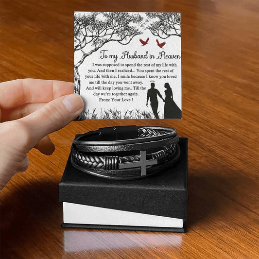 To My Husband in Heaven Mens Cross Bracelet