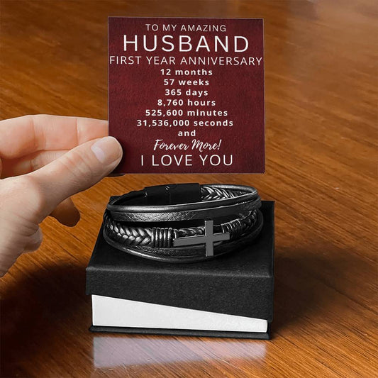 Husband One Year Anniversary Mens Cross Bracelet