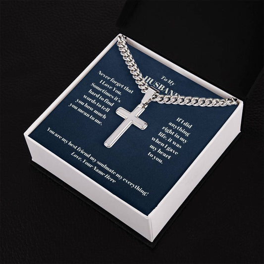 To my husband - when we get to the end of our lives Personalized Cross Necklace with Cuban Chain