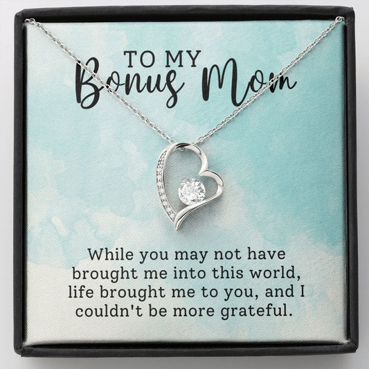 To My Bonus Mom Funny Forever Love Heart Necklace Gift for Stepmother