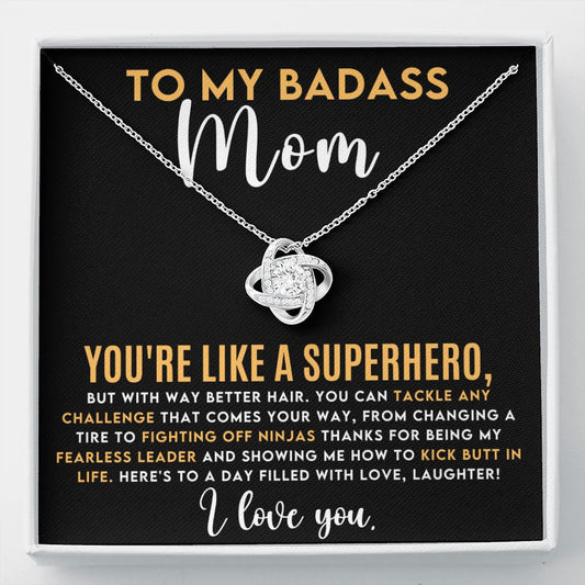 To My Badass Superhero Mom Love Knot Necklace