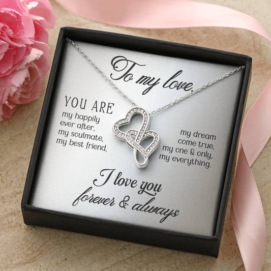 To My Love Double Heart Pendant Necklace Gift For Wife or Girlfriend
