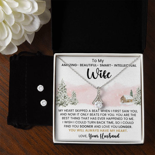 Beautiful Wife Heart Necklace and Earring Christmas Gift Set
