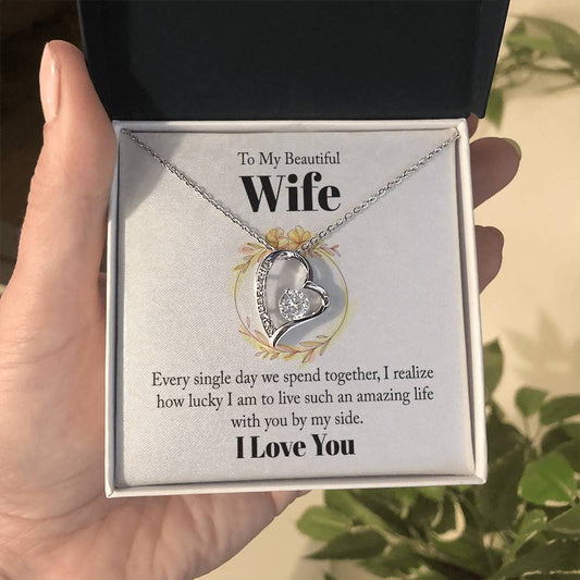 Beautiful Wife Lucky With You By My Side Heart Necklace Gift