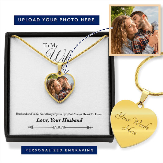Custom Wife Heart Photo Engraved Necklace - Personalized Gift for Her
