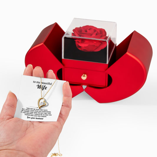 Beautiful Wife Rose Box Heart Necklace Gift Set