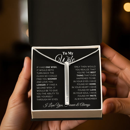Wife Engraved Vertical Bar Necklace