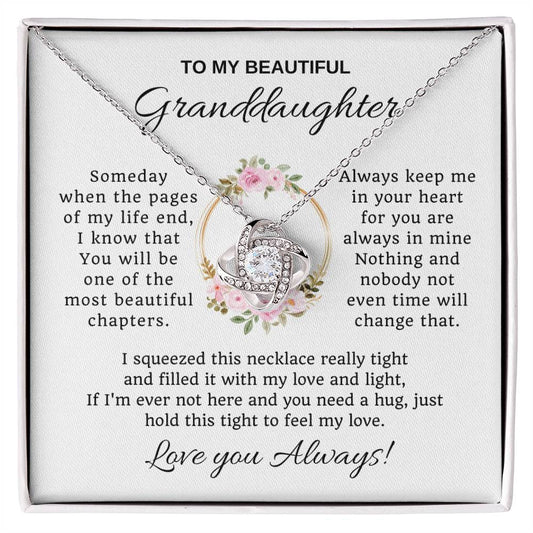 To My GranddaughterRotating Rose Box Love Knot Necklace