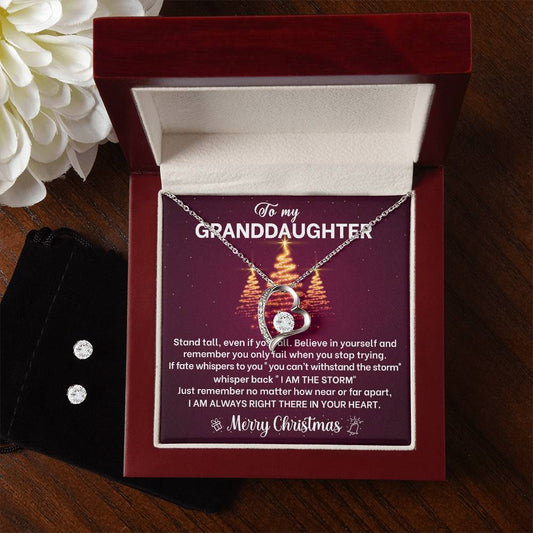 Granddaughter Necklace and Earring Christmas Gift Set
