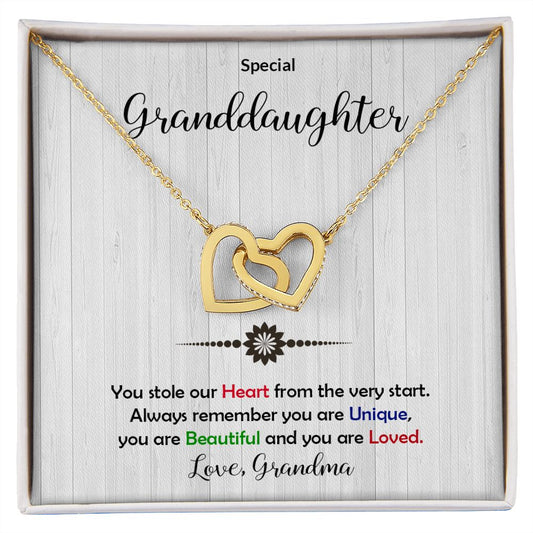 Granddaughter - Beautiful and Loved - Interlocking Heart Necklace