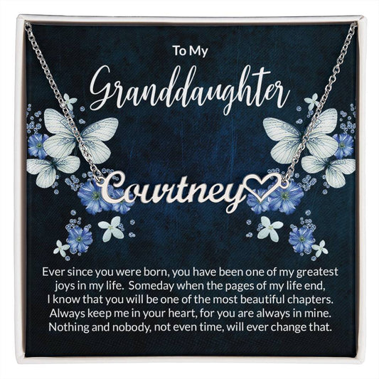 Granddaughter Beautiful Chapters Name Necklace with Heart