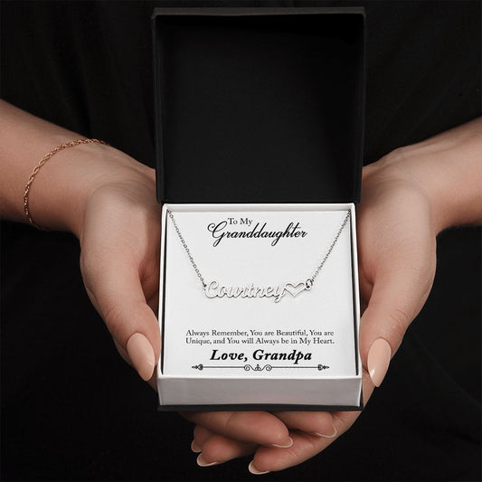 Granddaughter Personalized Name Necklace With Heart