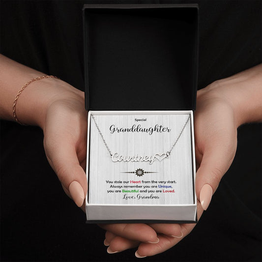Granddaughter You Stole My Heart Personalized Name Necklace With Heart