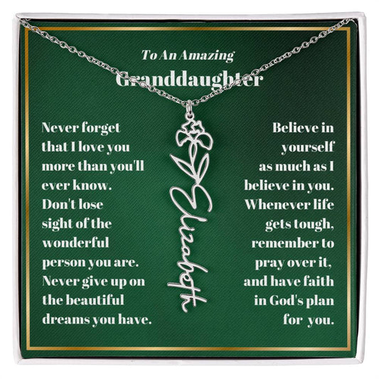 Granddaughter Personalized Name Birth Flower Necklace Gift