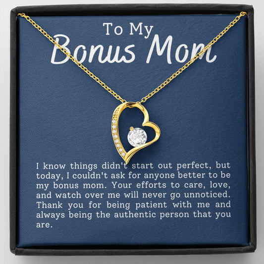 To My Bonus Mom Funny Forever Love Heart Necklace Gift for Stepmother