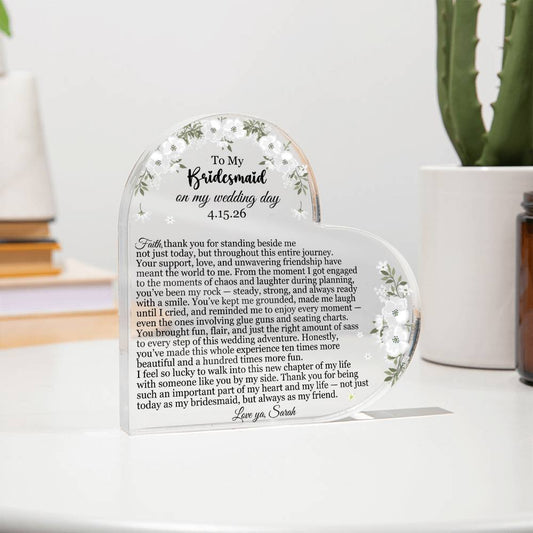 To My Bridesmaid Acrylic Heart Plaque