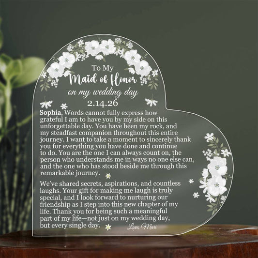 Maid of Honor Acrylic Heart Plaque