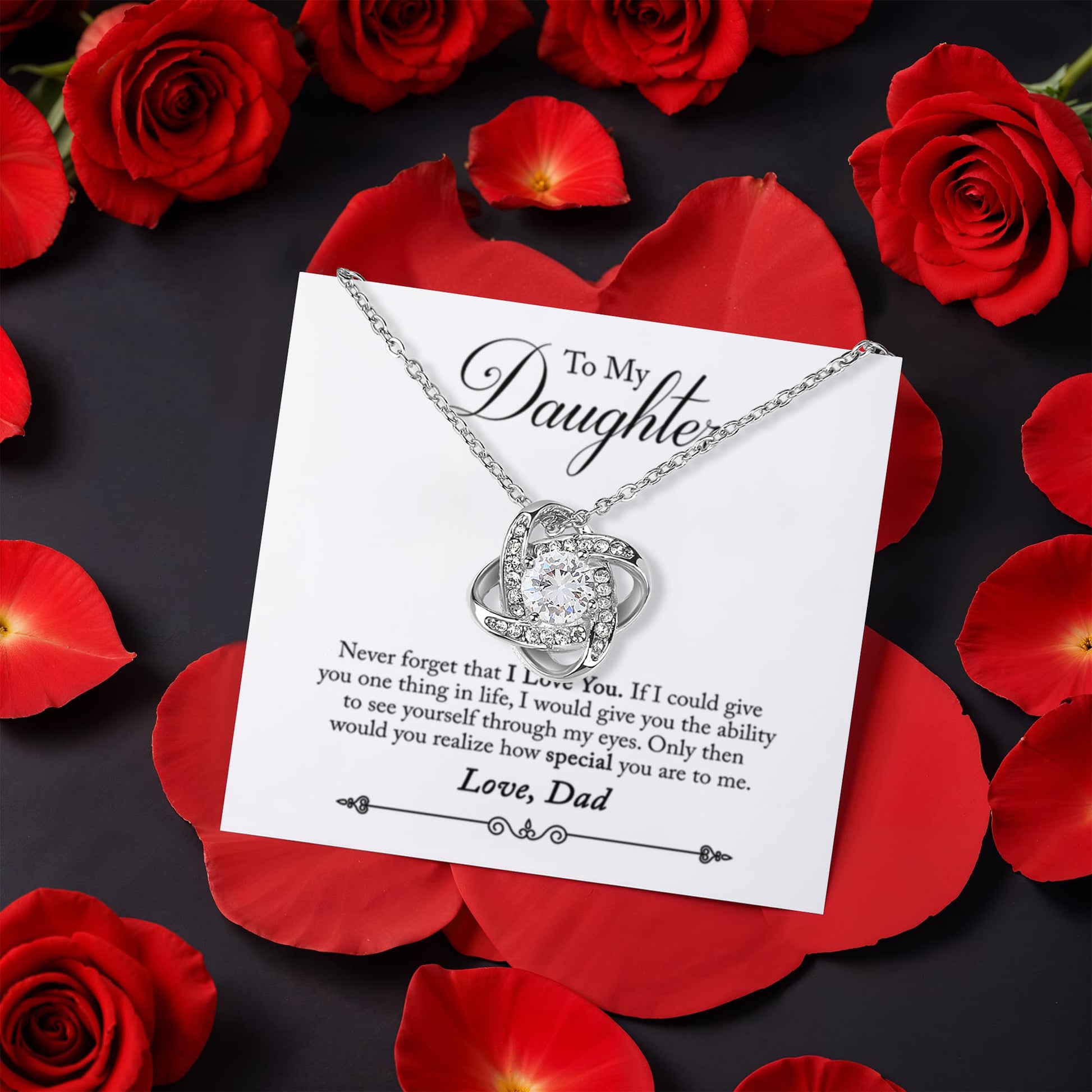 Daughter Rotating Rose Box and Love Knot Necklace Dad