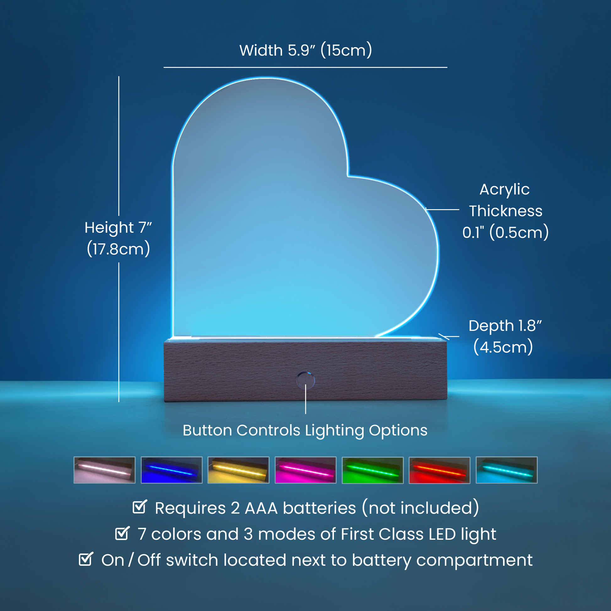 - 🌈 LED wooden base with 7 vibrant colors, customizable via USB or battery power