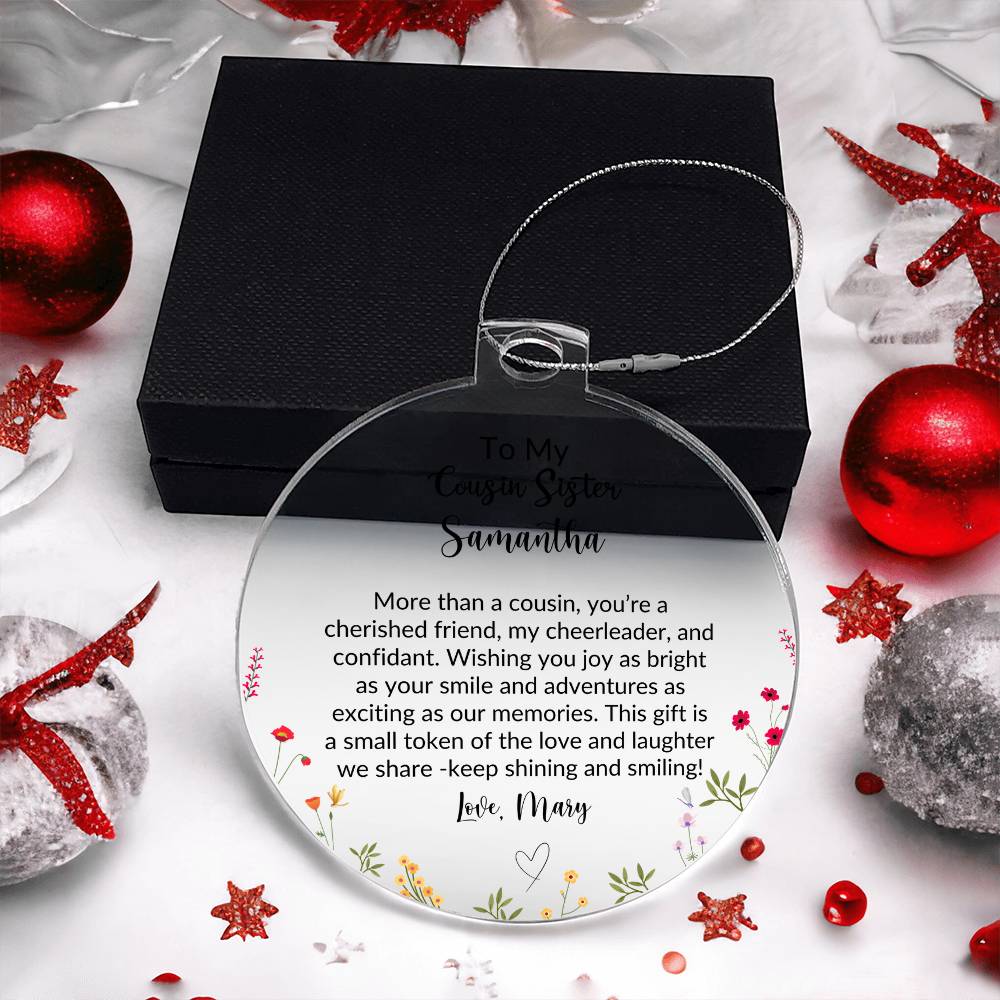 🎄 Delight your dear cousin sister with our exquisite Personalized Acrylic Ornament! This beautifully crafted piece is designed to capture the warmth and joy of your special bond.