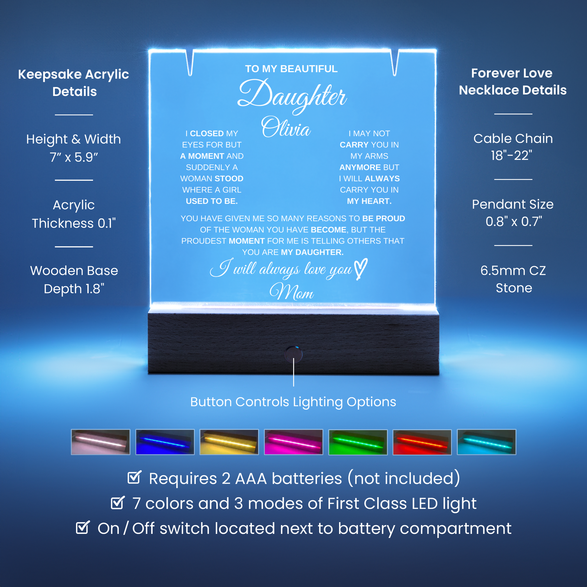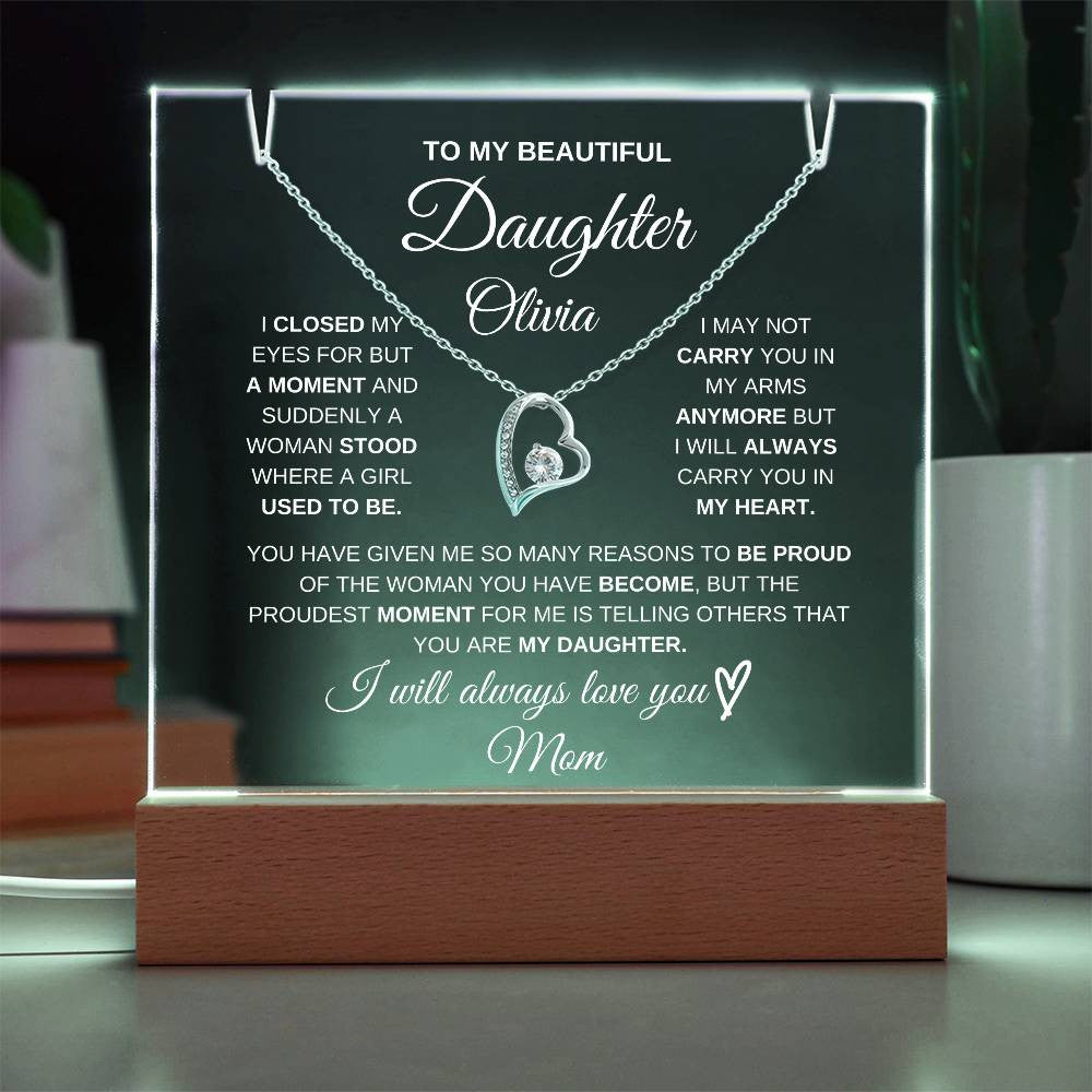 Daughter Heart Necklace & Lighted Jewelry Holder Plaque