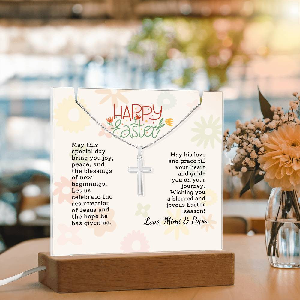 Easter Gift Cross Necklace with Lighted Acrylic Sign