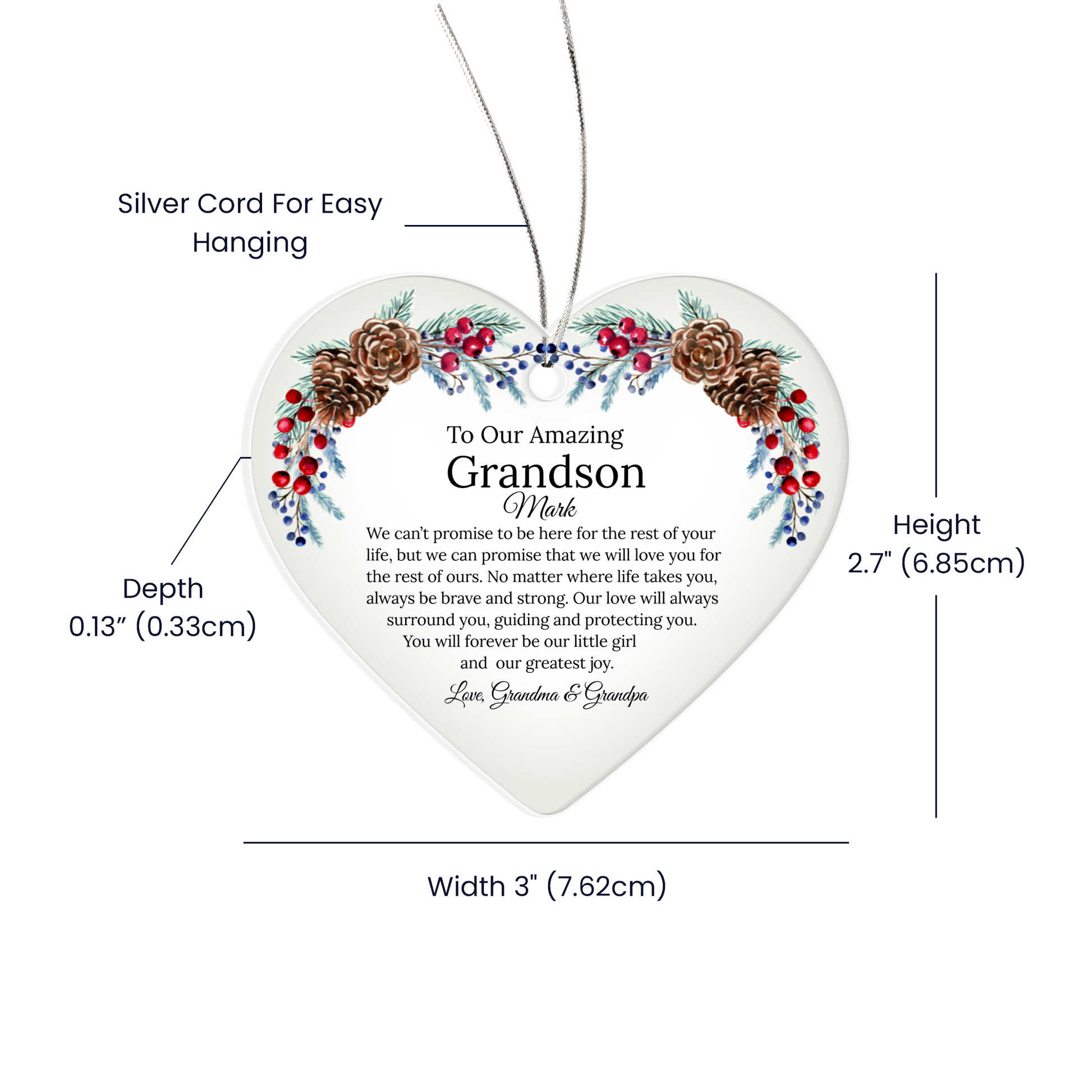 ❤️ This ornament makes a heartfelt gift for any grandson, showing him he is cherished and loved. Perfect for birthdays, Christmas, or just because. Order yours today and make this holiday truly memorable!