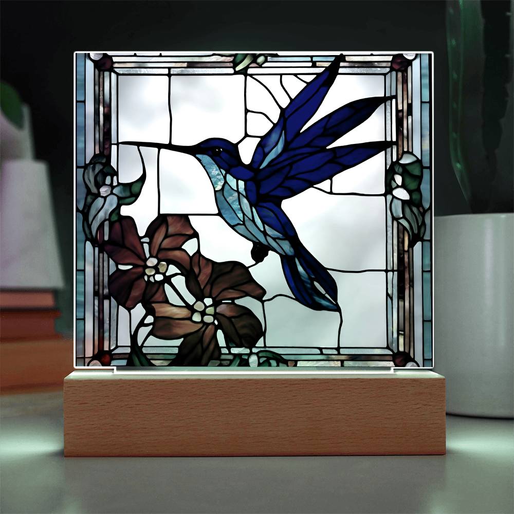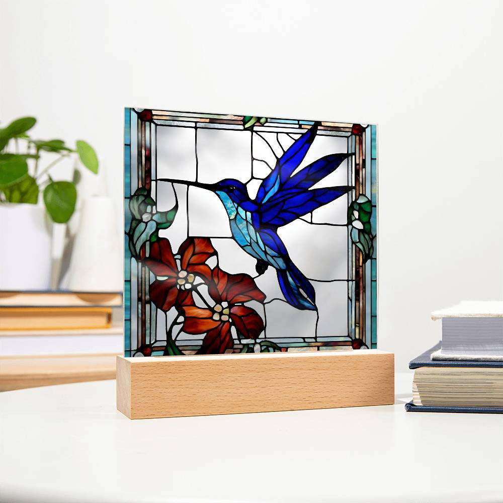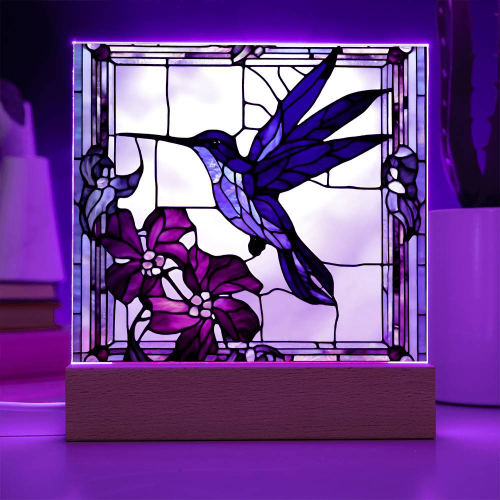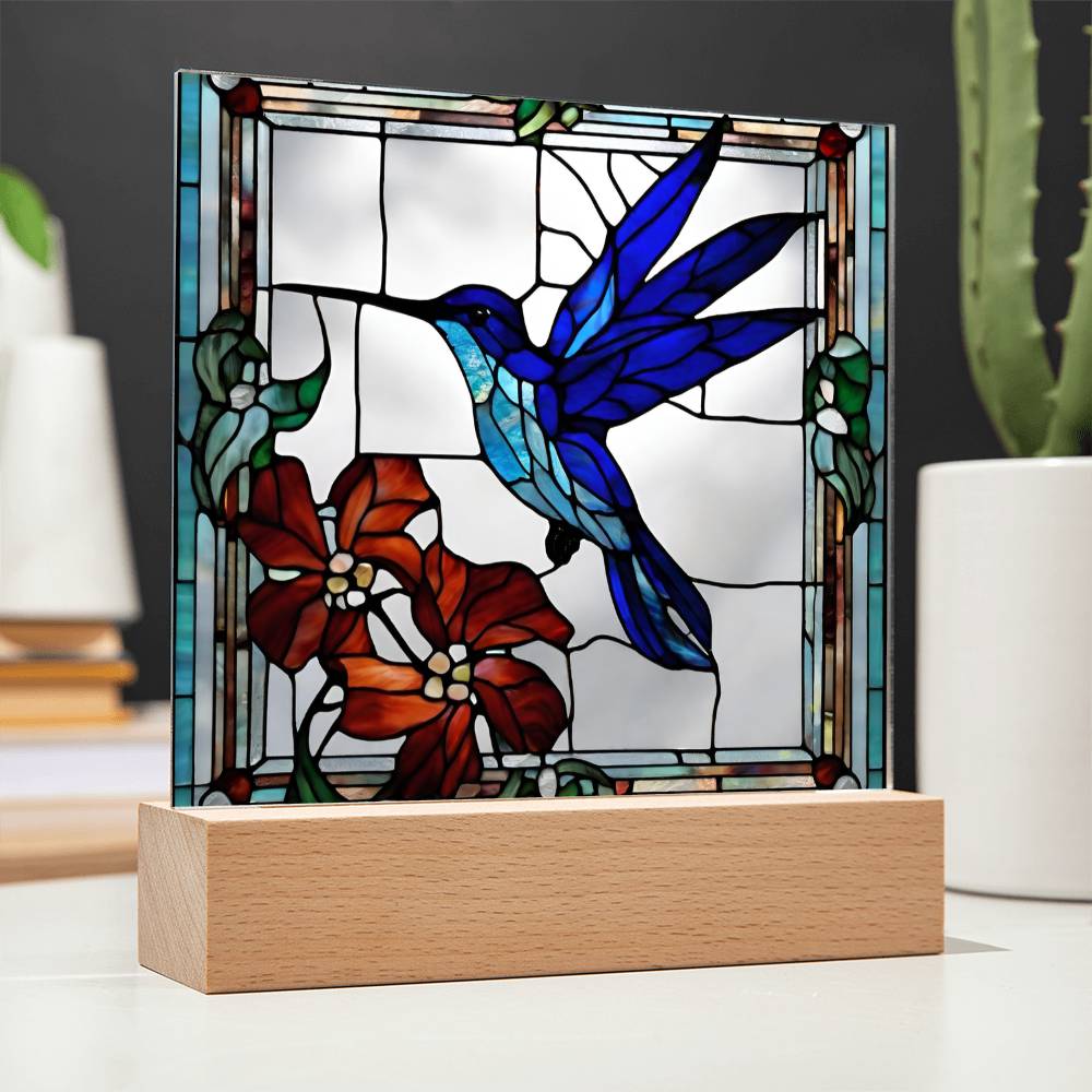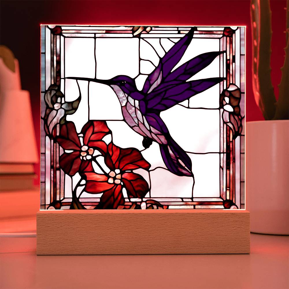 Hummingbird Flowers Faux Stained Glass LED Acrylic Plaque