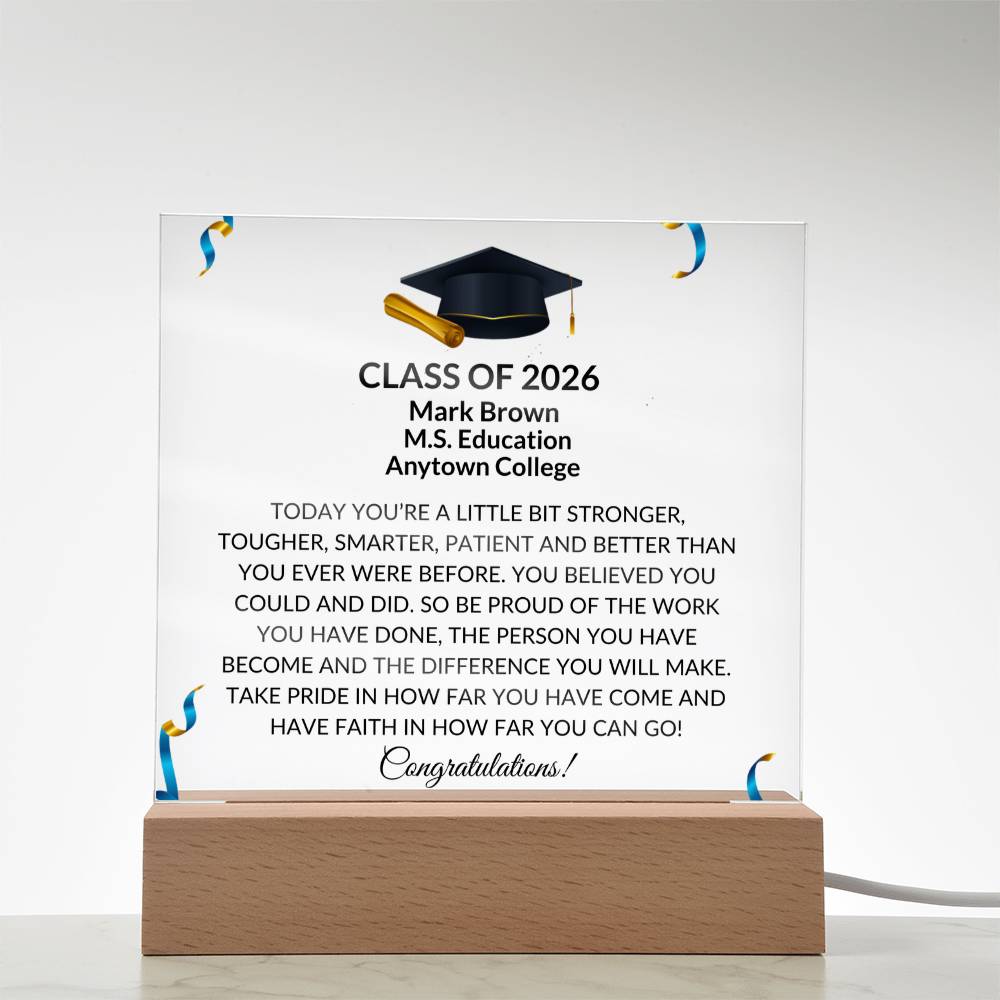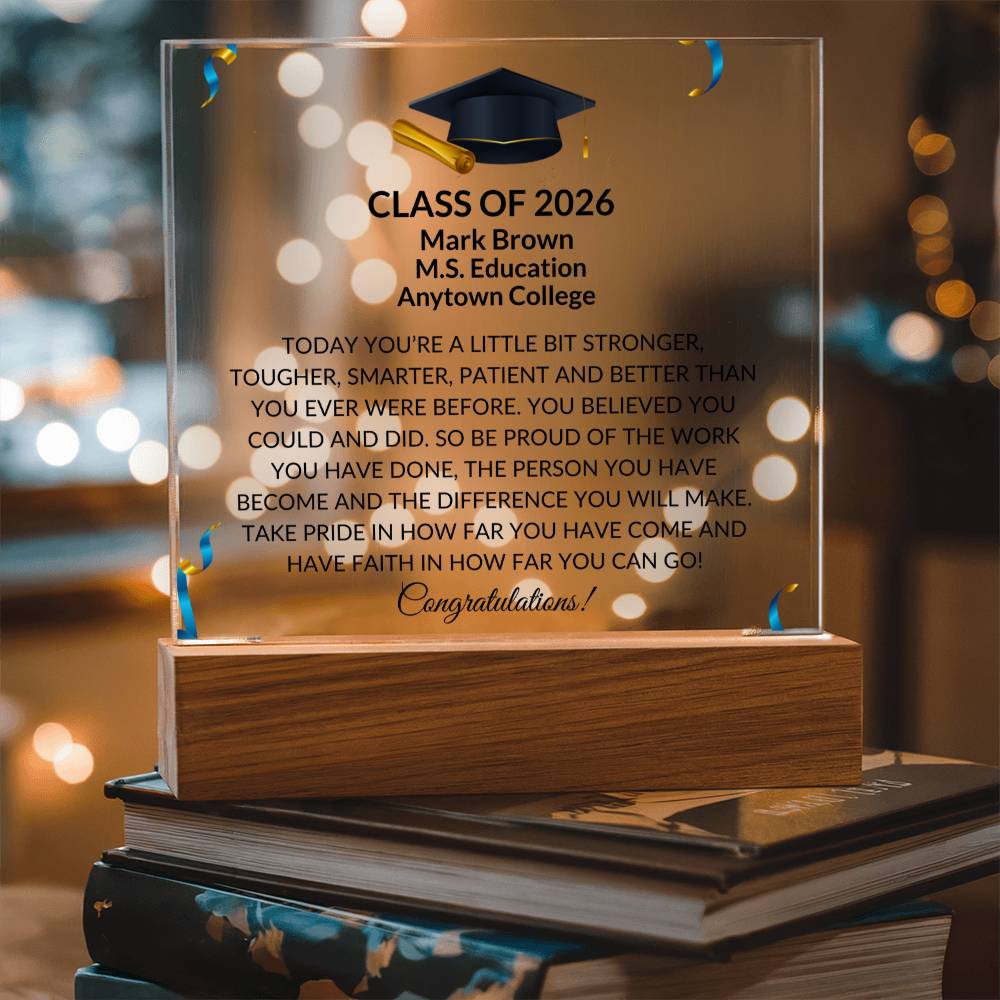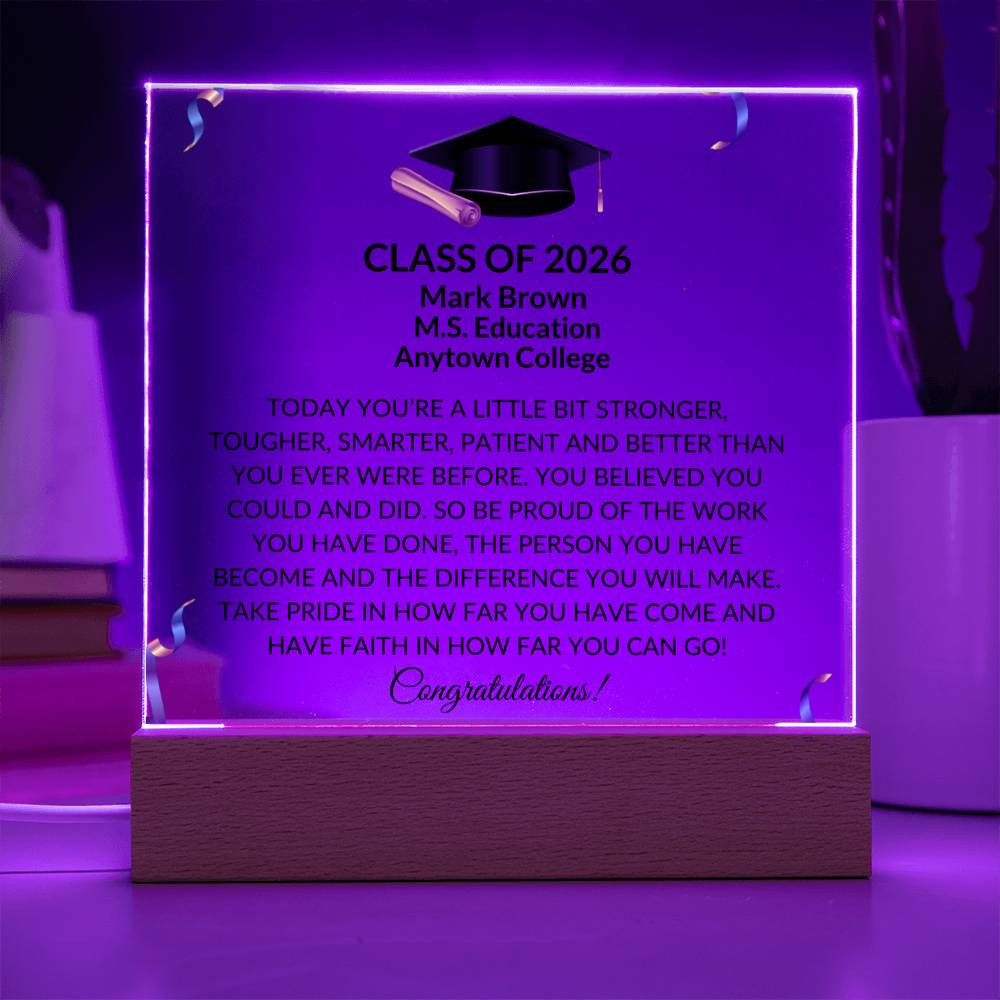 Combine modern technology and a heartfelt message with our Square Acrylic Plaque! This design is printed on crystal-clear premium acrylic and easily becomes the centerpiece of any room. And the contemporary design wouldn't be complete without its sleek wooden base, elevating the display that will instantly become a conversation starter. Create a memorable presentation when you upgrade to the LED wooden base! This is the ideal present for your beloved partner, family members, or dear friends on special occasions like anniversaries, birthdays, or any occasion where you want to express your love and appreciation in an unforgettable way. Let your loved ones know how much they mean to you by purchasing today!