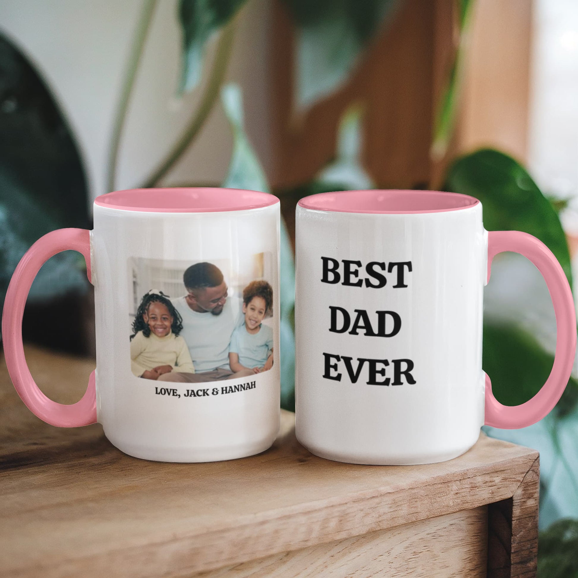 Personalized Dad Photo Mug, Best Dad Ever Coffee Cup, Father's Day Gift, Custom Photo Mug for Dad, Two-Tone Ceramic Mug