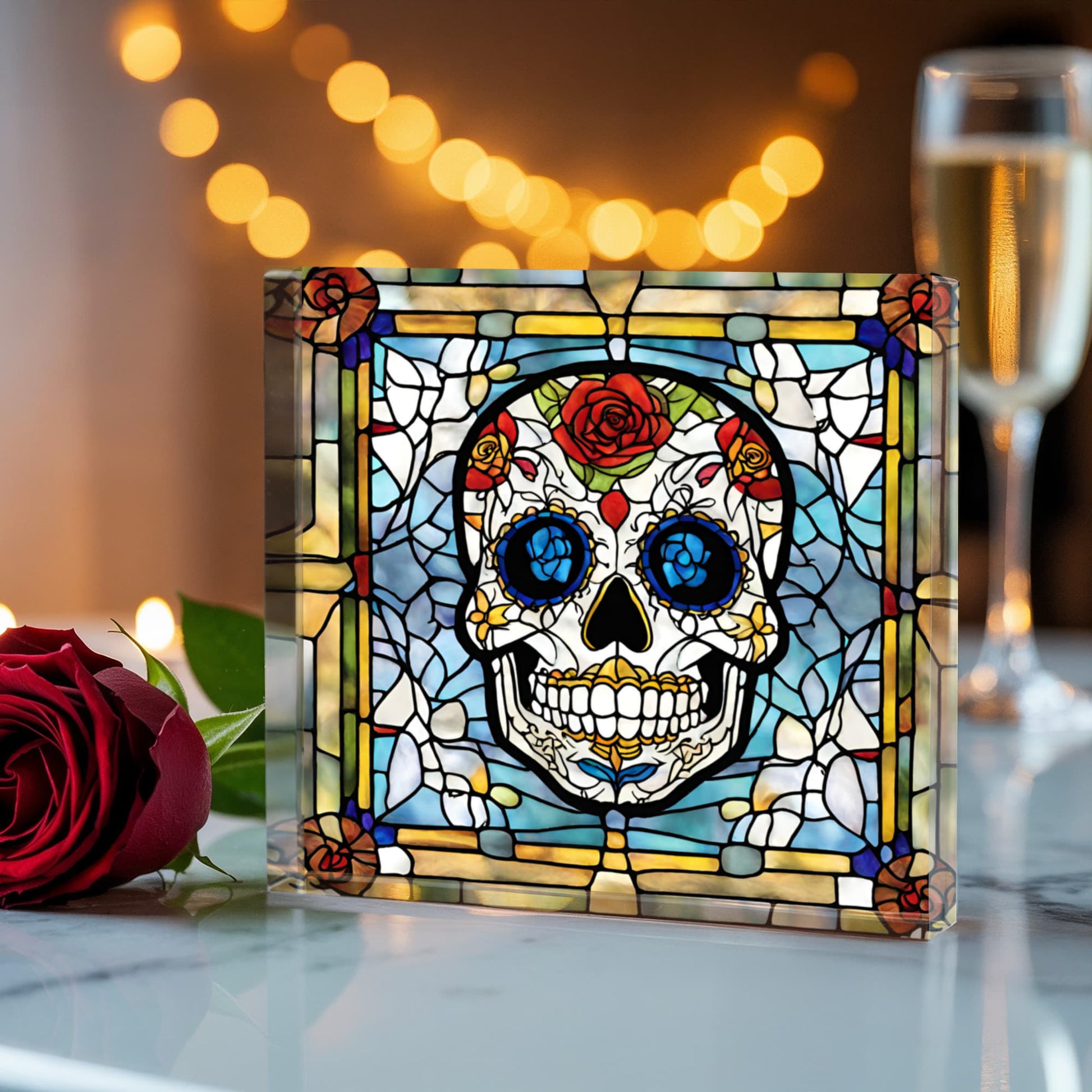 Transform your space with our breathtaking Sugar Skull Stained Glass Style Acrylic Decor. This beautifully crafted piece displays a vivid sugar skull design at its center, adorned with vibrant roses that create a captivating focal point. The stained glass effect adds a touch of elegance, as light dances through its intricate patterns, making each glance a delightful experience. Ideal for those who appreciate unique art and cultural motifs.