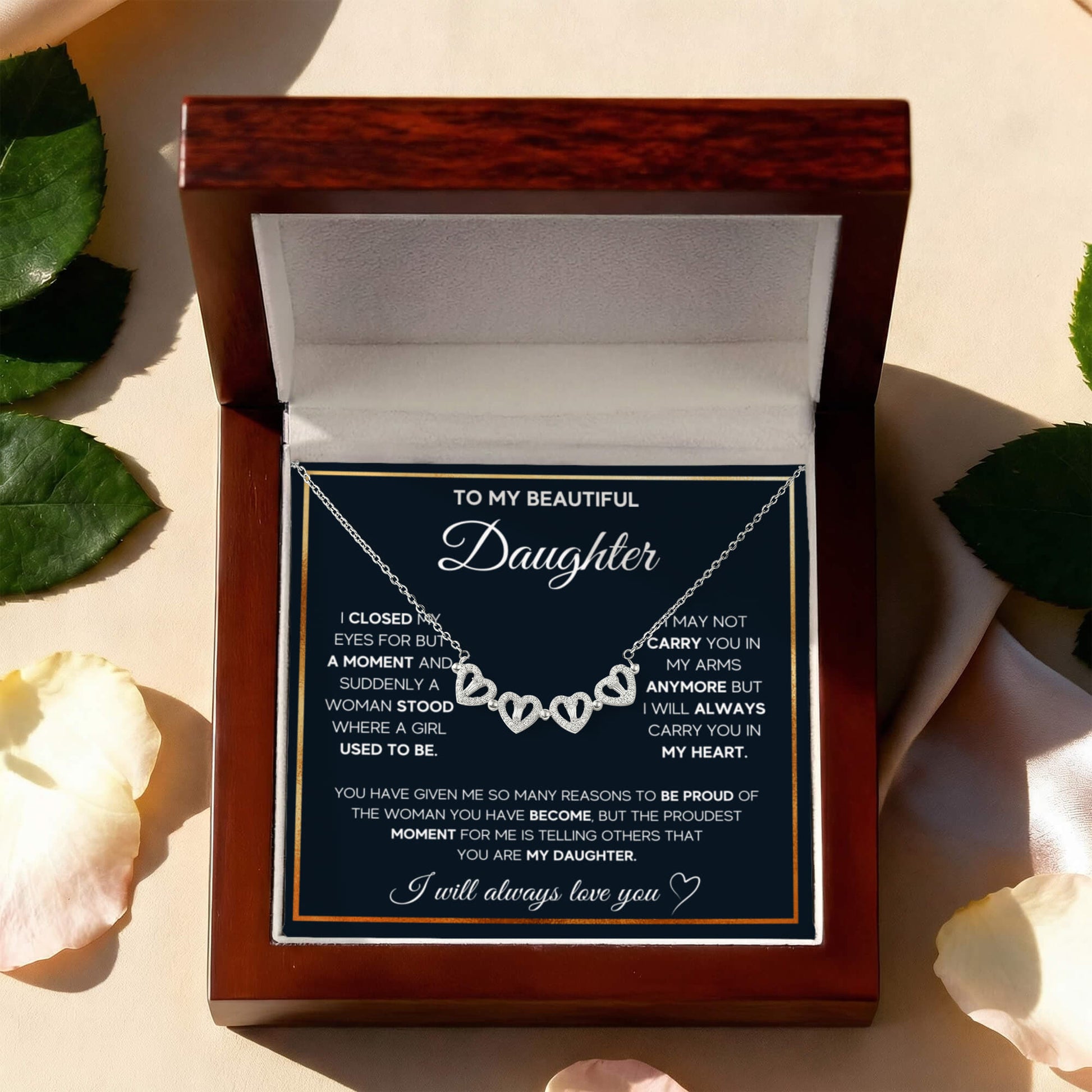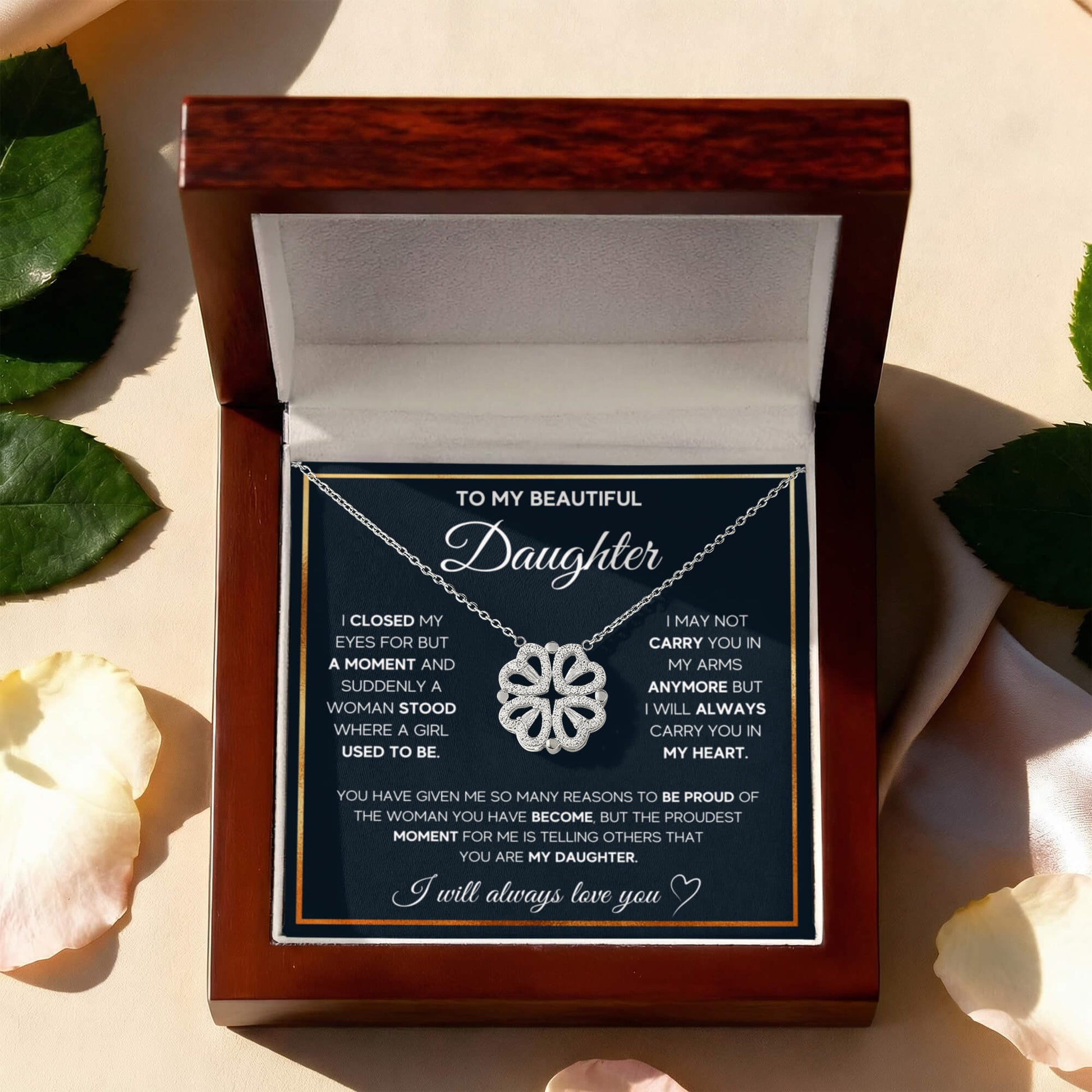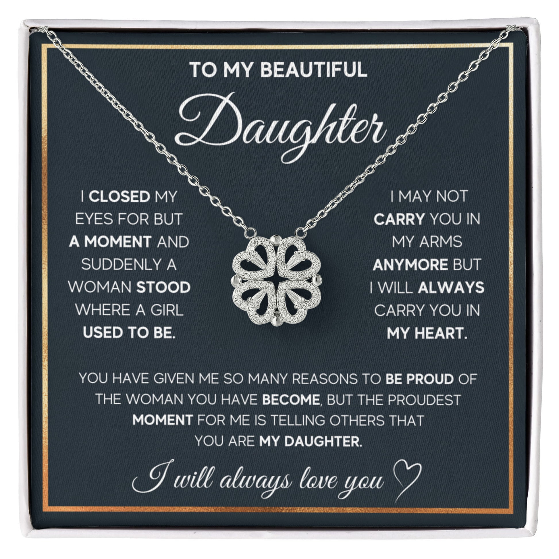 To My Beautiful Daughter Heart Clover Convertible Necklace