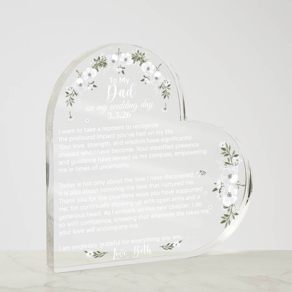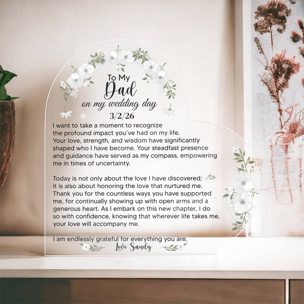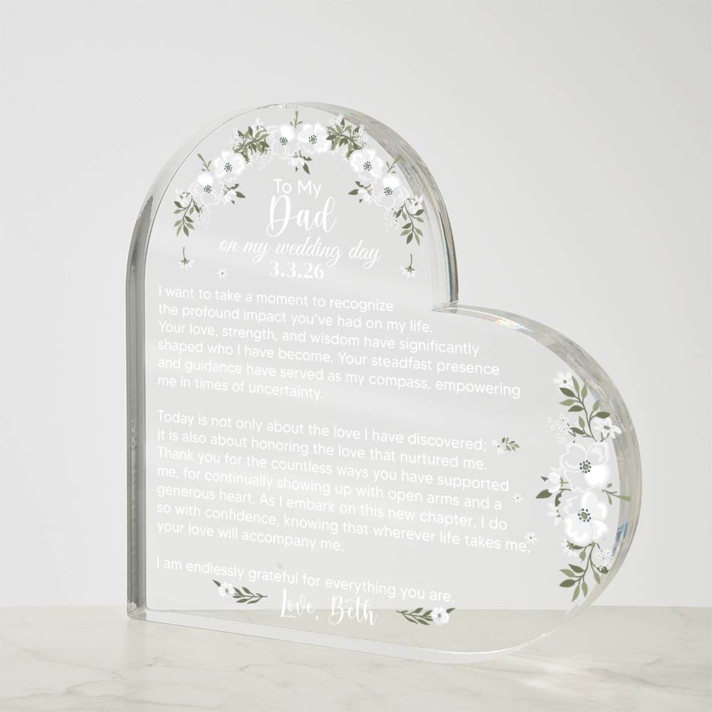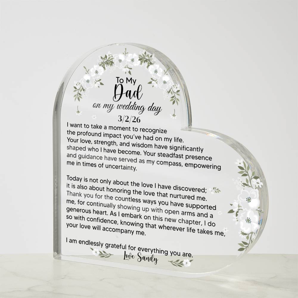 To My Dad on my Wedding Day Acrylic Heart Plaque