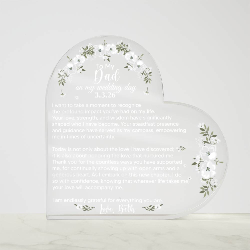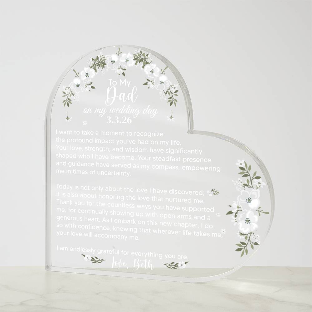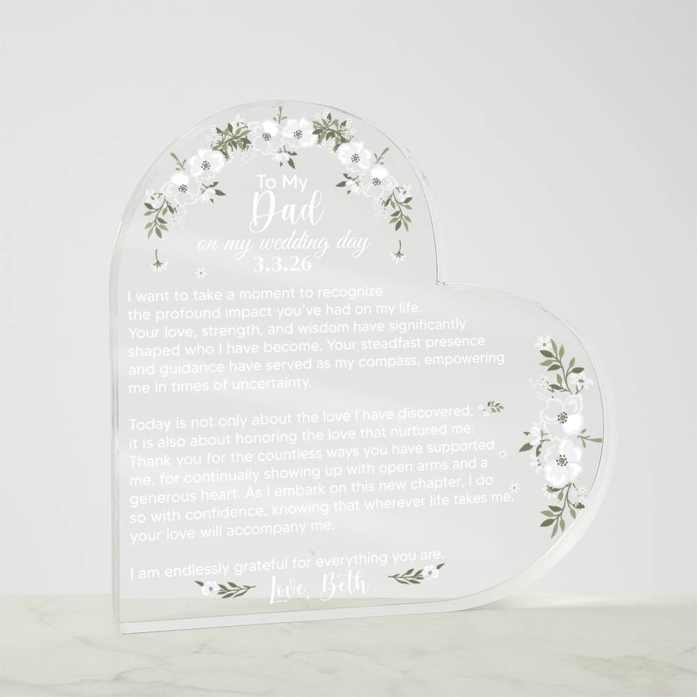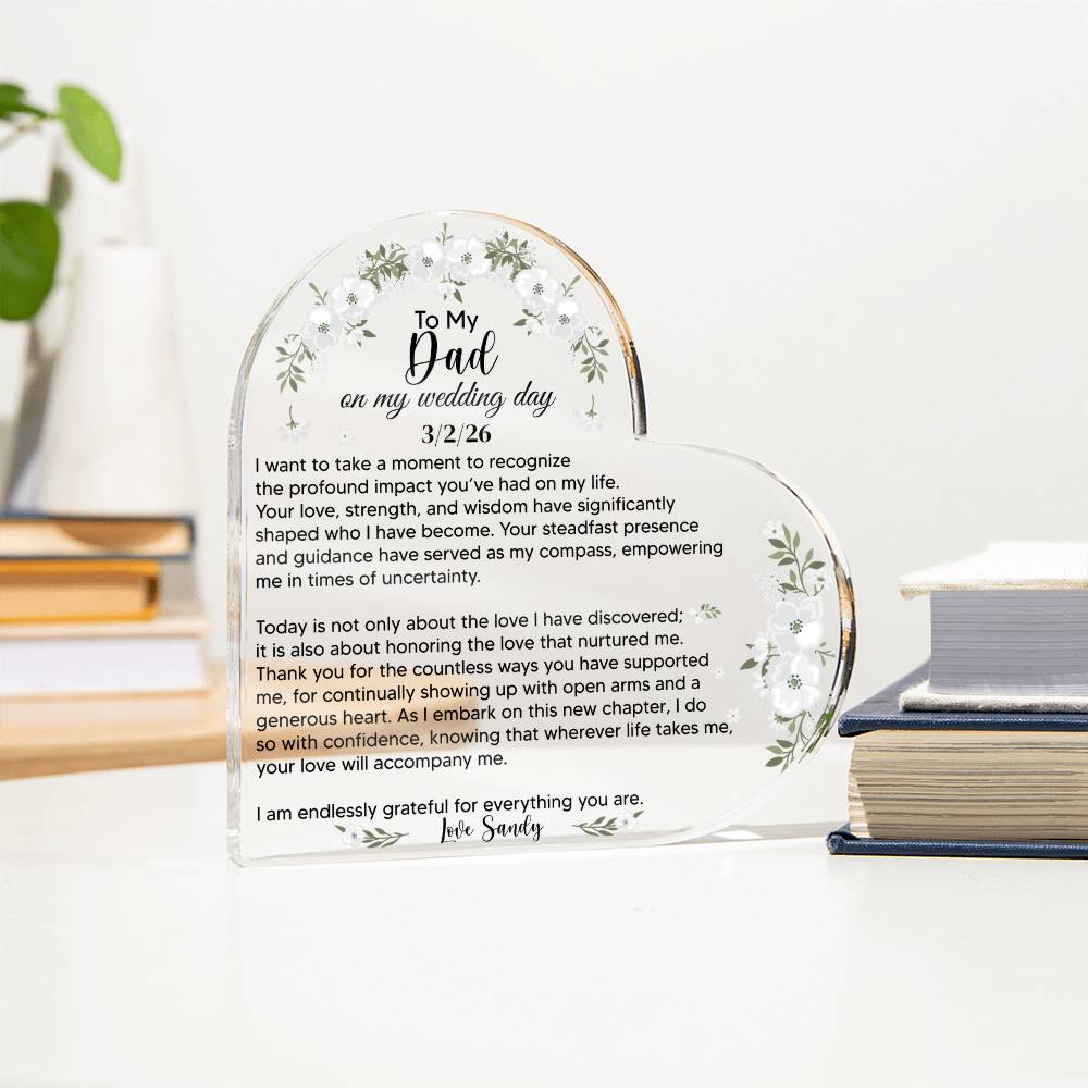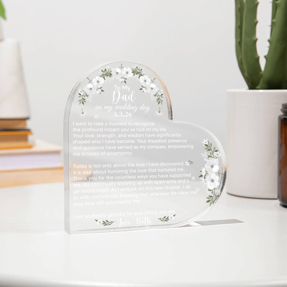 To My Dad on my Wedding Day Acrylic Heart Plaque