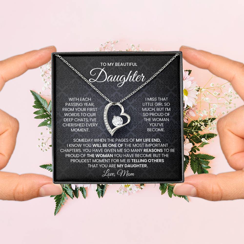 The dazzling Forever Love Necklace is sure to make her heart melt! This necklace features a stunning 6.5mm CZ crystal surrounded by a polished heart pendant embellished with smaller crystals to add extra sparkle and shine. Beautifully crafted with either a white gold or yellow gold finish, be sure to give her a classic gift she can enjoy everyday.